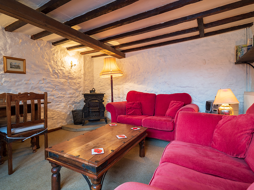 Inside the property there is a beautifully beamed kitchen complete with all the essentials. The beams continue in the living/dining room with a decorative wood-burning stove giving the room a wonderful sense of character. Downstairs there is also a bathroom. A large patio outside, with garden furniture for 6, enjoys all day sunshine. Upstairs there are two spacious bedrooms with exposed floorboards and wooden beams giving the rooms a cosy, intimate feel. There is a kingsize bed in the main room, and the large second bedroom has a double bed with an additional single bed.