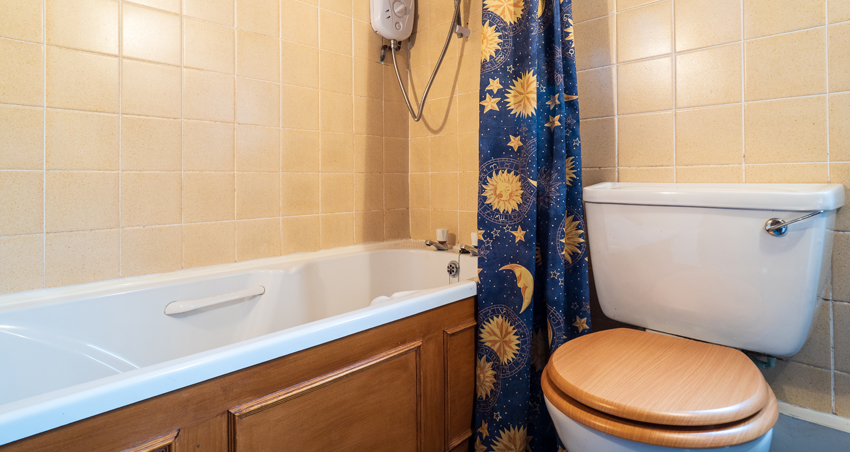 Bathroom: With shower over bath, and toilet.